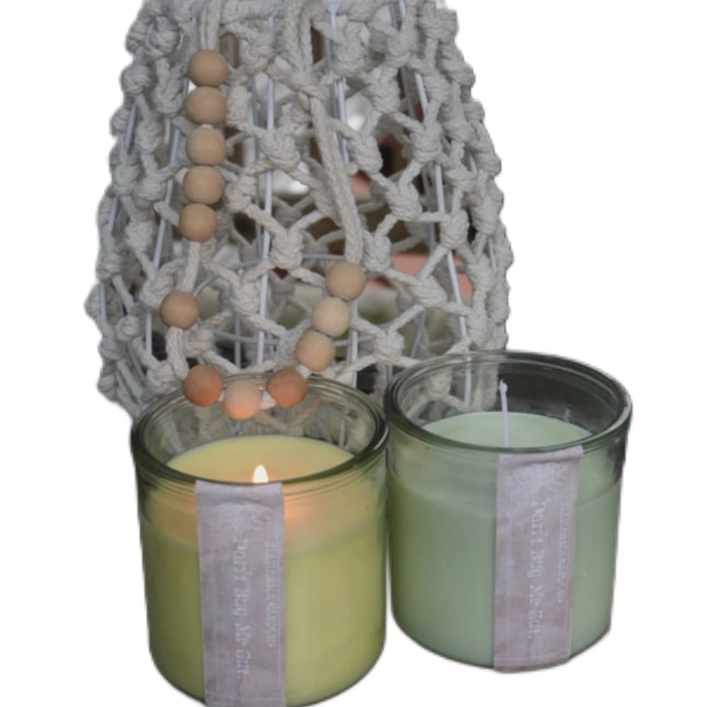 Each candle comes in a stylish glass jar wrapped in a hand-knitted crochet net, adding a soft vintage touch to your décor. Available in two calming tones: sunny yellow and sage green.